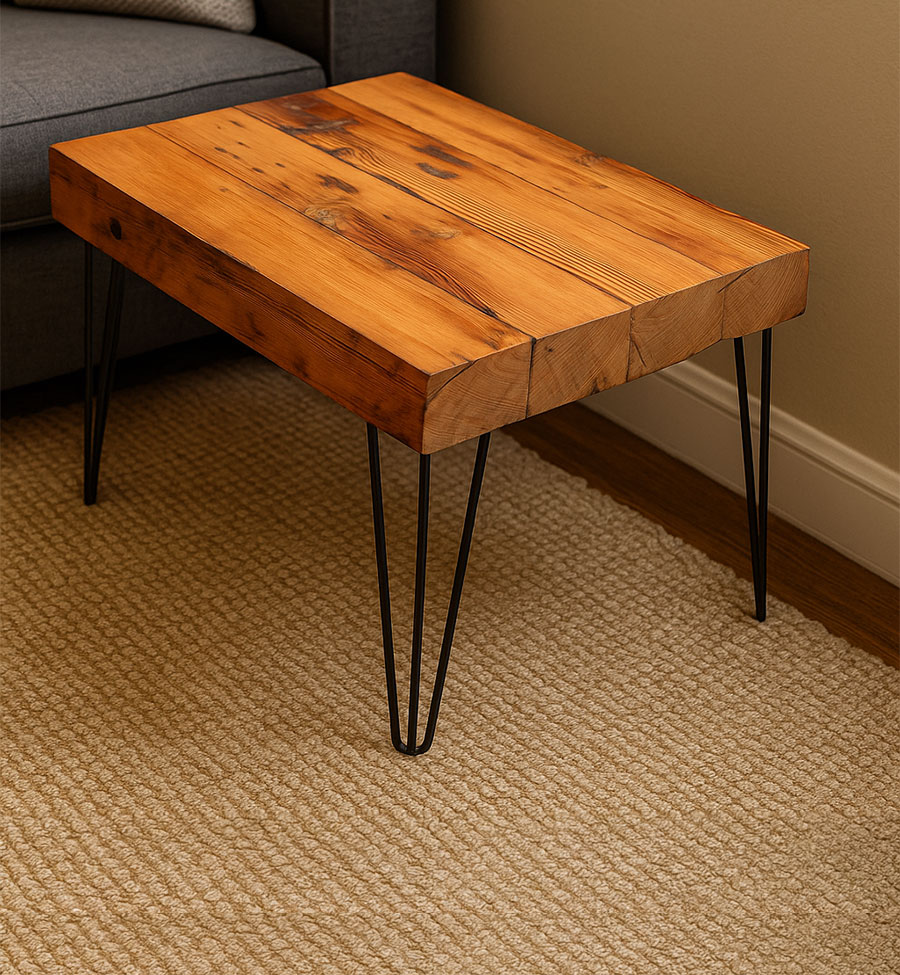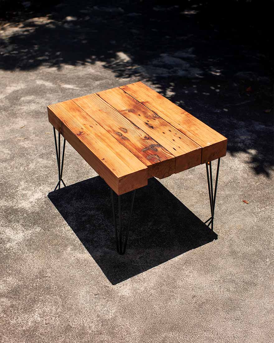 MetalBronte Block rests on slender metal legs that bring a light, modern touch to its blocky timber top. Minimal in form yet strong in structure, the legs create a striking contrast, allowing the reclaimed Oregon pine to take centre stage while adding a sense of elegance and balance to the overall design.